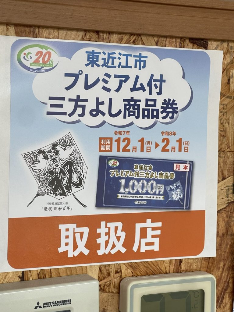 ★東近江市プレミアム付三法よし商品券 当店で使えます!★